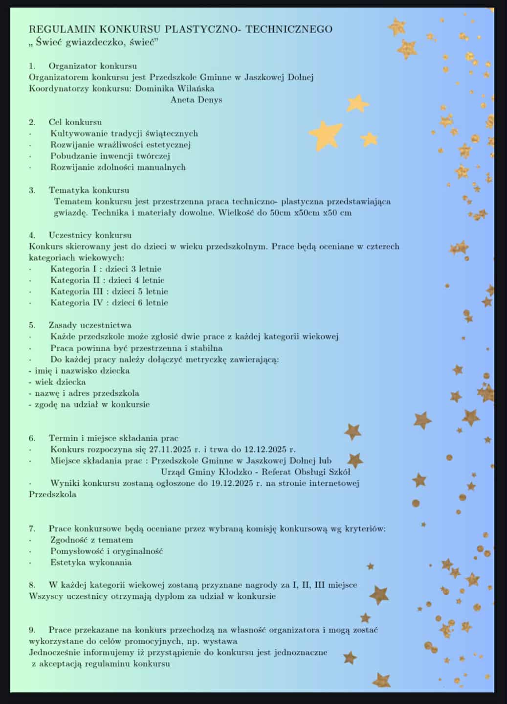 „ Świeć gwiazdeczko, świeć”. Dziękujemy również Rodzicom, którzy wspomagali swoje pociechy w tym zadaniu.